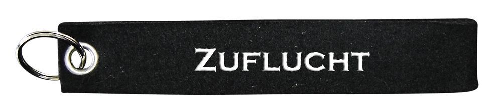 Dieser hochwertige Filz-Schlüsselanhänger hat die Einstickung: "ZUFLUCHT"