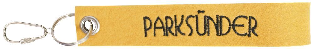 Dieser hochwertige Filz-Schlüsselanhänger hat die Einstickung: "PARKSÜNDER"