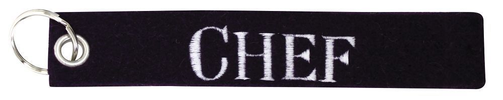 Dieser hochwertige Filz-Schlüsselanhänger hat die Einstickung: "CHEF"