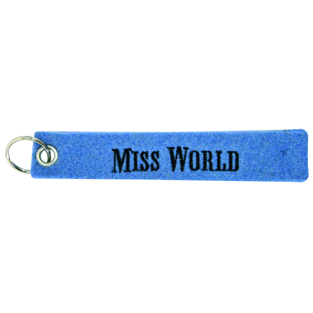 Dieser hochwertige Filz-Schlüsselanhänger hat die Einstickung: MISS WORLD