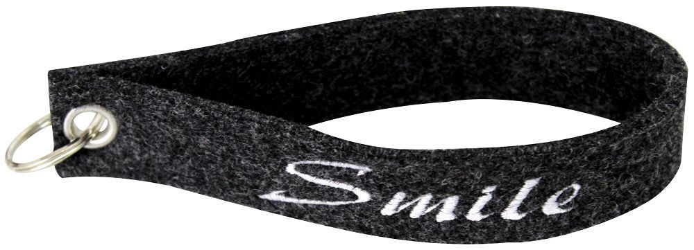 Dieser hochwertige Filz-Schlüsselanhänger hat die Einstickung: Smile
