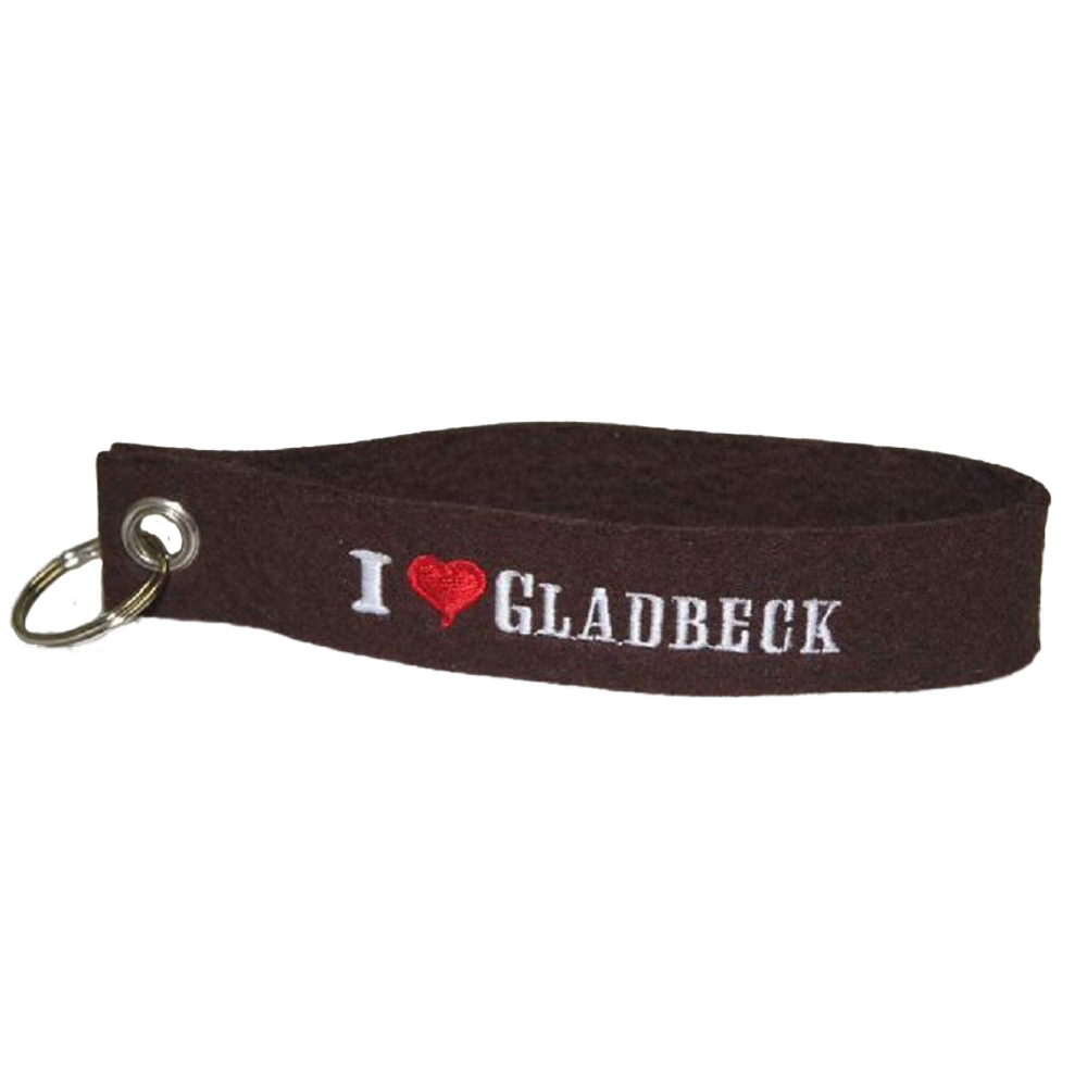 Dieser hochwertige Filz-Schlüsselanhänger hat die Einstickung: I LOVE GLADBECK