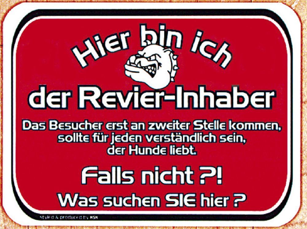 Hinweisschild - Hier bin ich der Revier-Inhaber…- 308246 - 20cm x 15cm - Wachhund