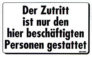 Hinweisschild - ZUTRITT für BESCHÄFTIGTE - Gr. ca. 25 x 15cm - 308439