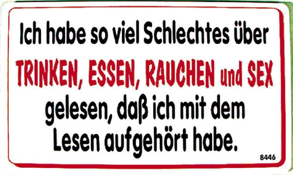 Spaßschild -Trinken, Essen.. Sex gelesen... - Gr. 25 x 15 cm - 308446