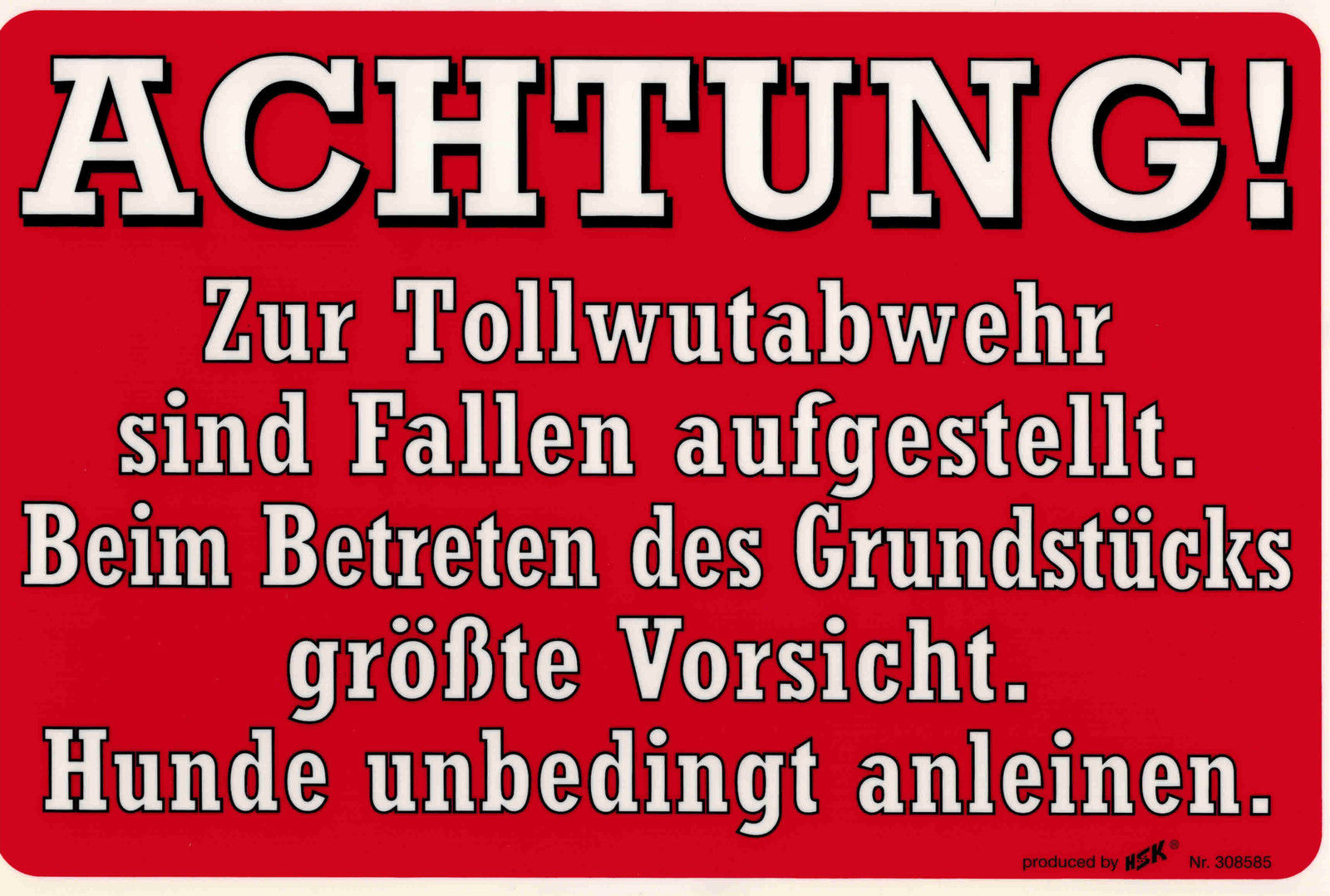 Warnschild - ACHTUNG TOLLWUTABWEHR - 308585 - 30 x 20 cm