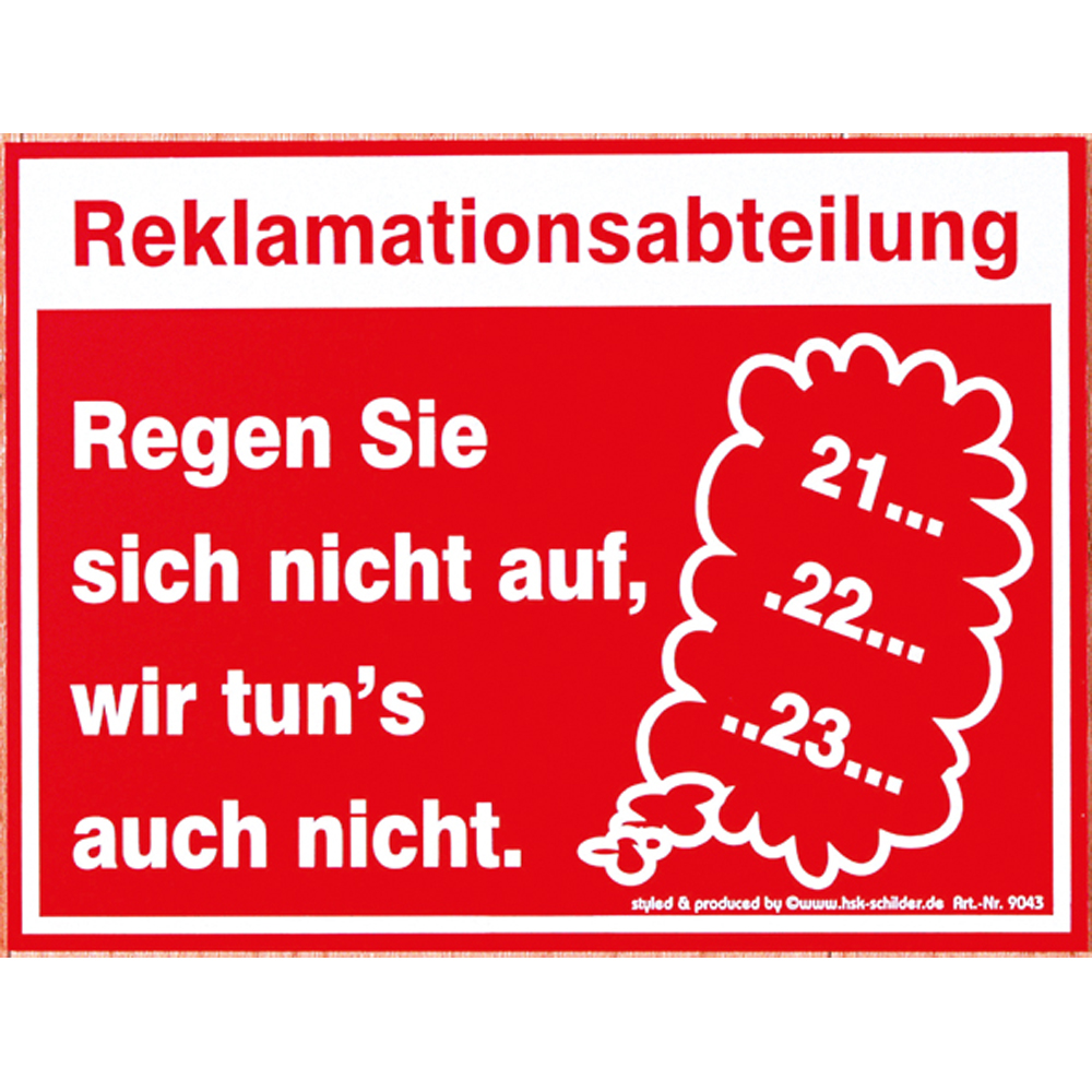 Spaßschild - Reklamationsabteilung - 309043 - Gr. ca. 20 x 15 cm