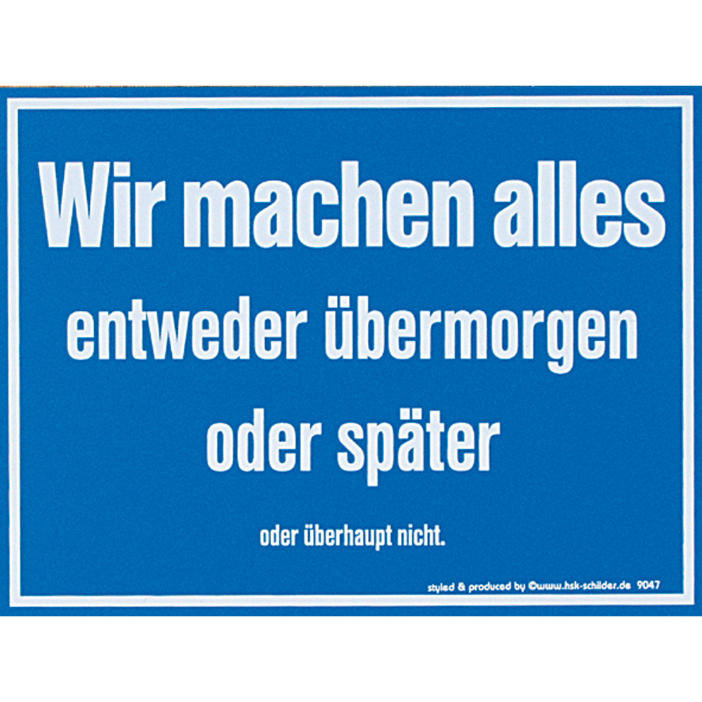 Spaßschild - Wir machen alles entweder übermorgen oder später - 309047 Gr. ca. 20 x 15 cm