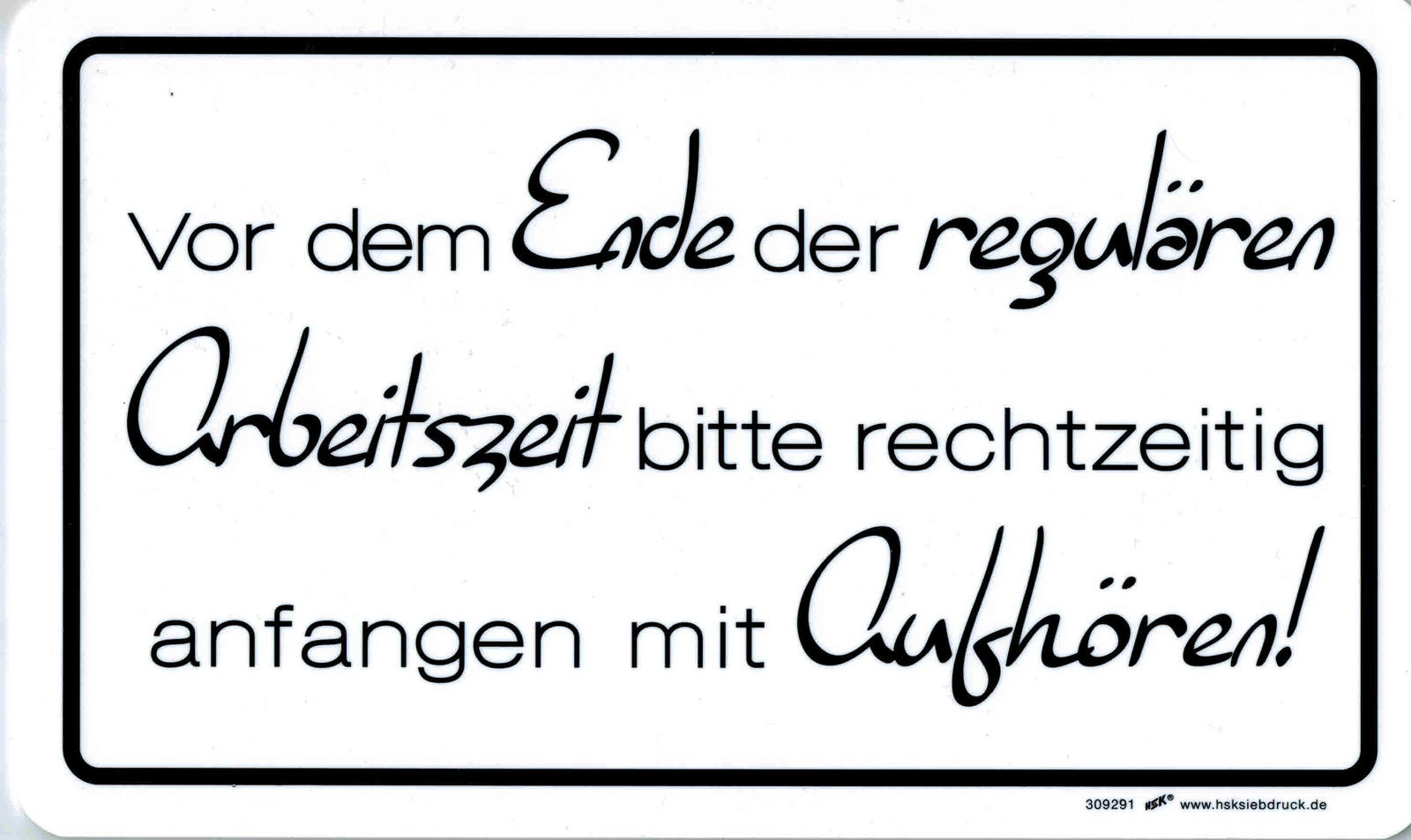 Spaß-Schild - ENDE DER REGULÜREN ARBEITSZEIT - 309291 - 25cm x 15cm - Arbeit Beruf Job