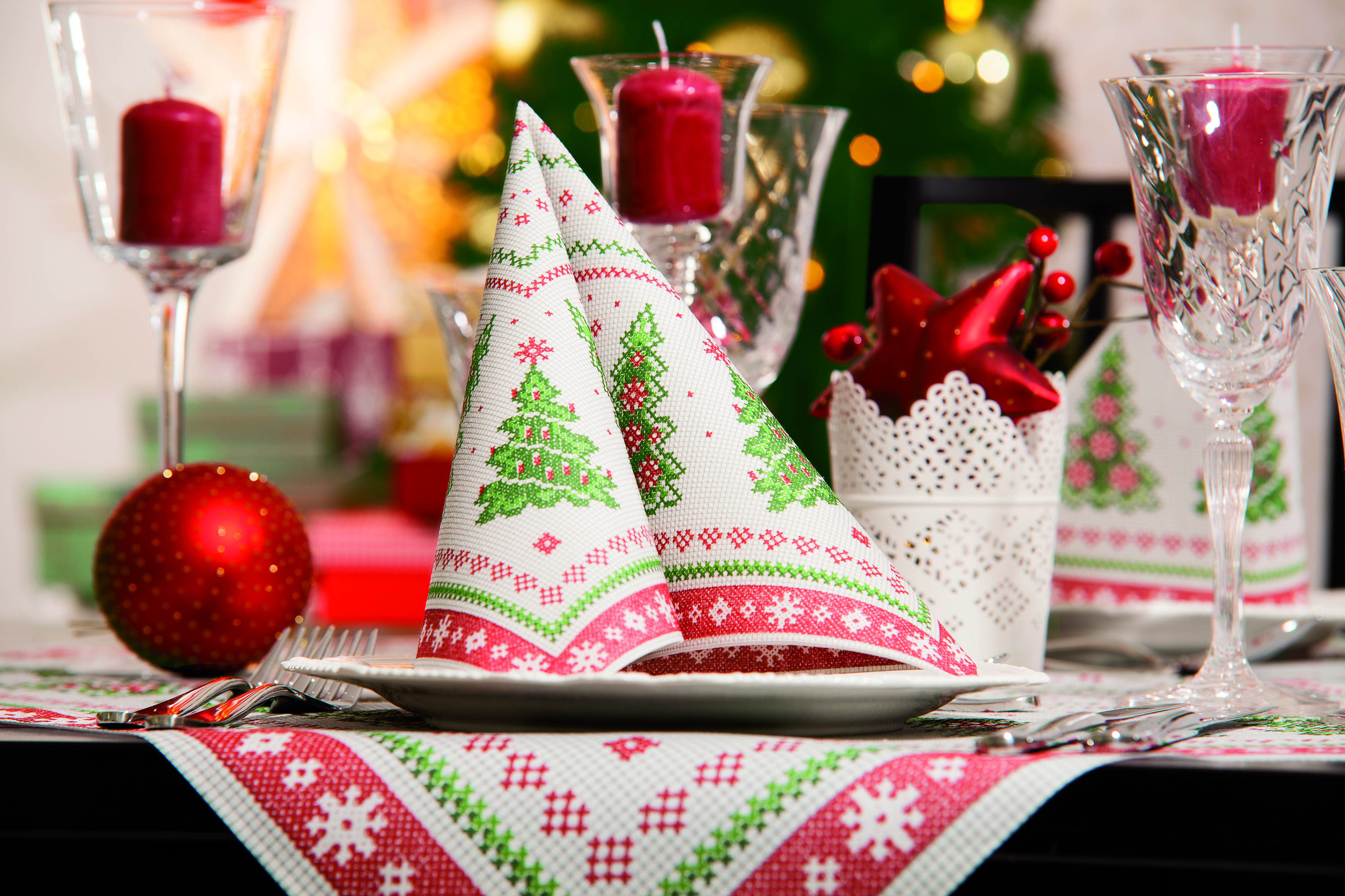 Passend zu diesem Motiv führen wir noch Bestecktaschen sowie Tischdecken.