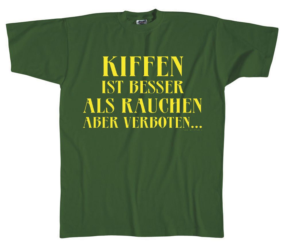 T-SHIRT Unisex mit Motivdruck - Kiffen ist besser als Rauchen aber verboten - 09347 grün - Gr. S-XXL
