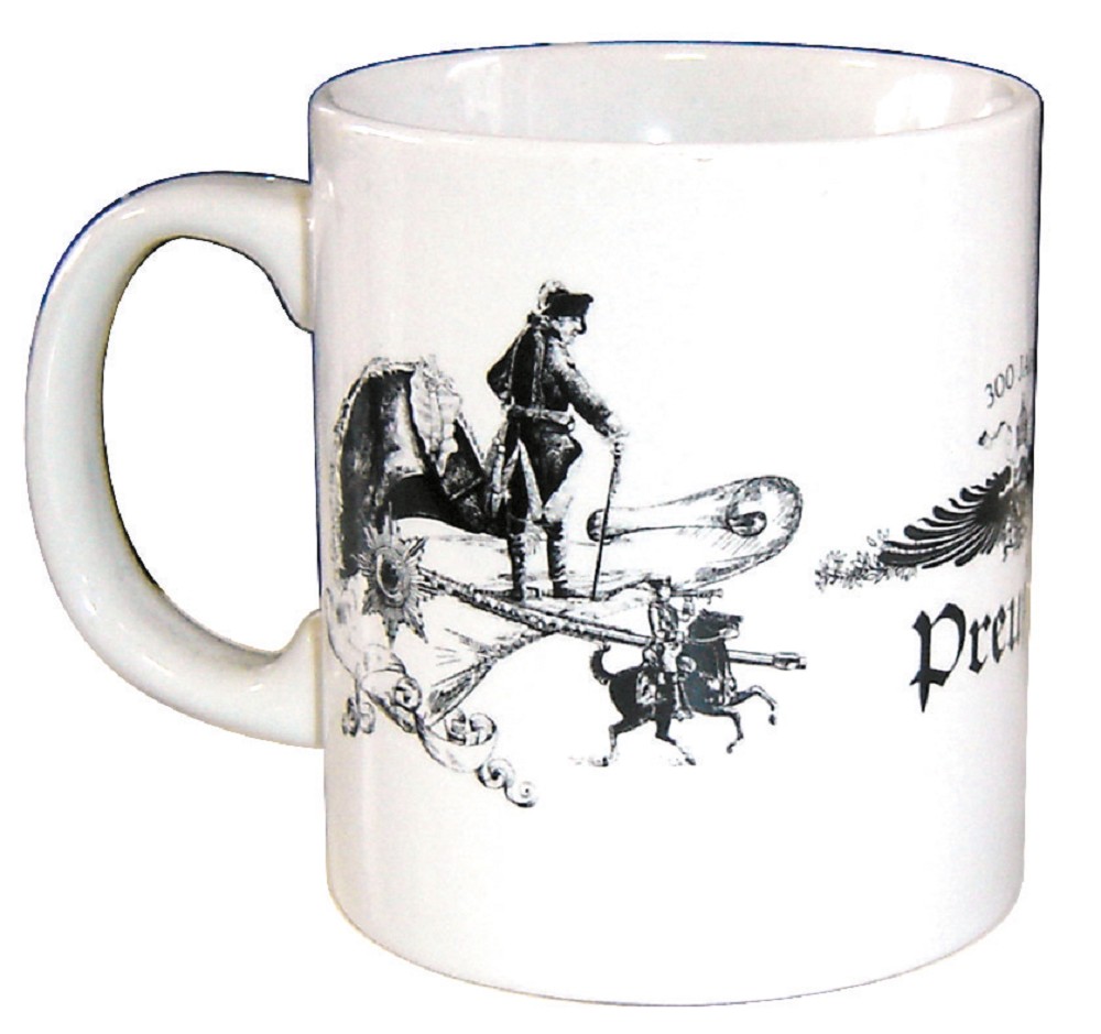 Diese mit hochwertigem Preußen-Motiv veredelte Tasse wurde bei 760° gebrannt und ist Spülmaschinen geeignet.