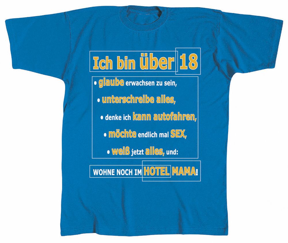 T-Shirt unisex mit Aufdruck - Ich bin über 18...wohne im Hotel Mama - 09671blau - Gr. S-XXL