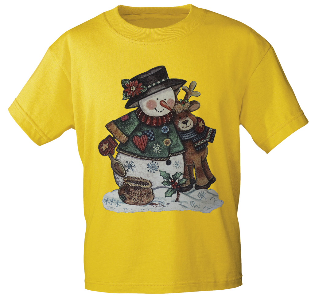 T-Shirt mit Print - Schneemann - 10417 - versch. Farben zur Wahl - gelb / XL