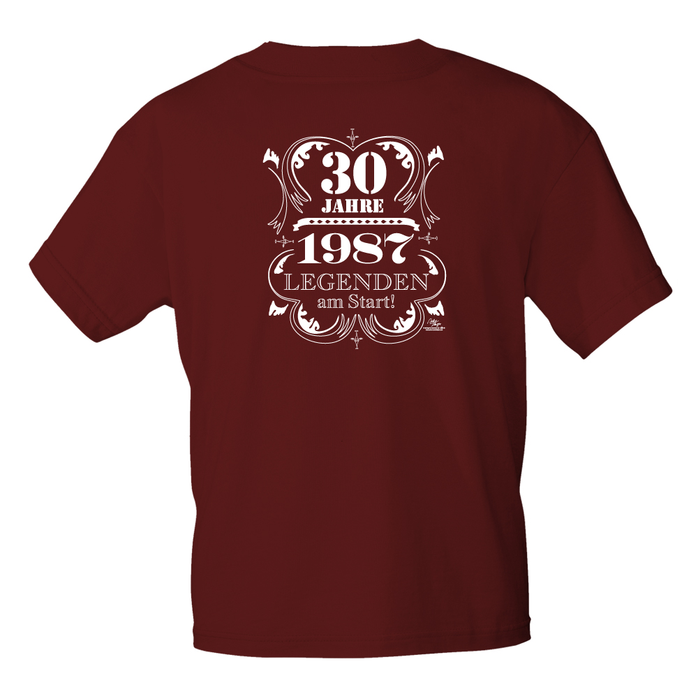 T-Shirt mit Rückenprint - 30 Jahre - 1987 Legenden am Start - 12882 dunkelrot - Gr. S-XXL