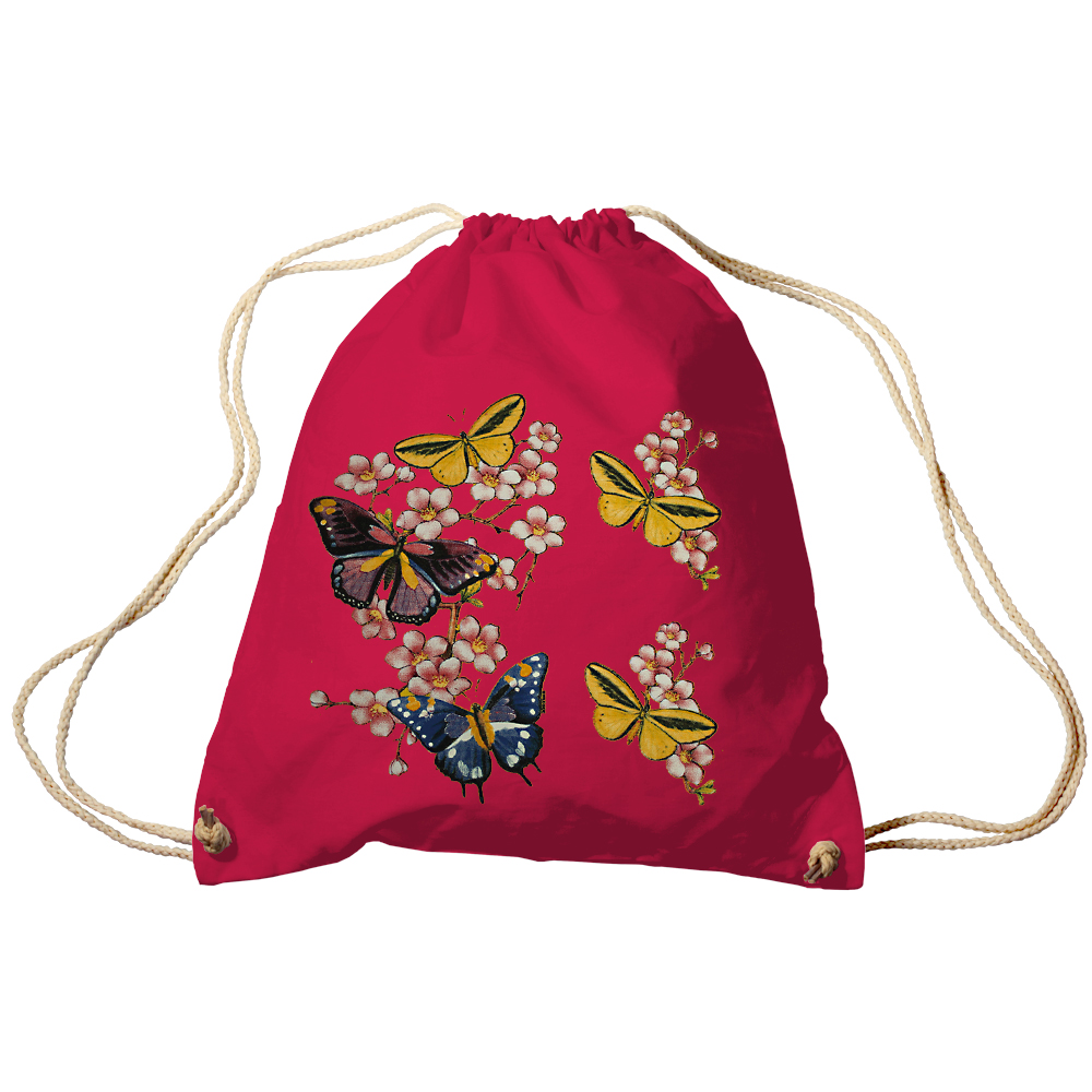 Trend-Bag Turnbeutel Sporttasche Rucksack mit Print -Schmetterlinge - TB65322 rot