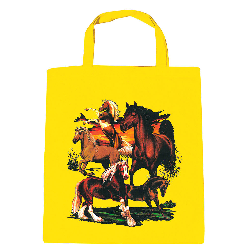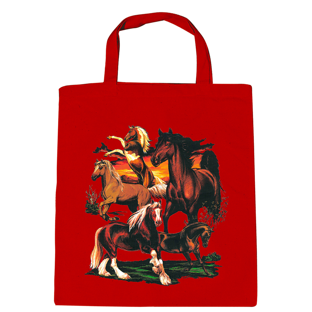 Baumwolltasche mit Print - Pferde Horses - B12668 versch. Farben zur Wahl
