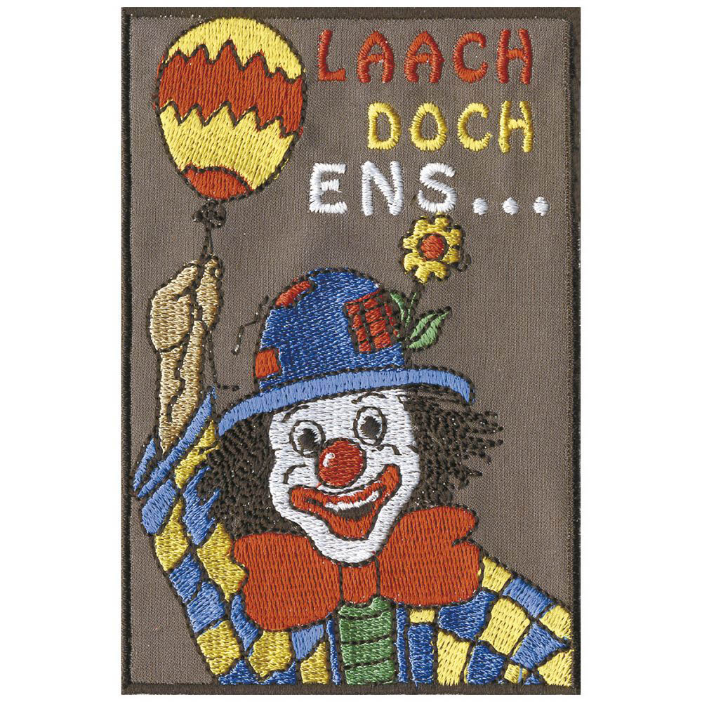 AUFNÄHER CLOWN mit Luftballon - Laach doch ens Gr. 7,5cm x 11cm 04984 Applikation Stick Patches Aufbügler