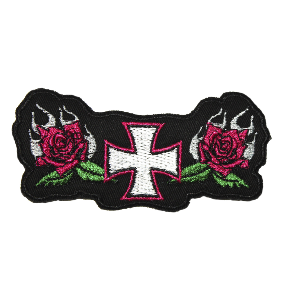 Patches Aufnäher - Kreuz mit Rose - Gr. ca. 11,5cm x 5cm - 04304
