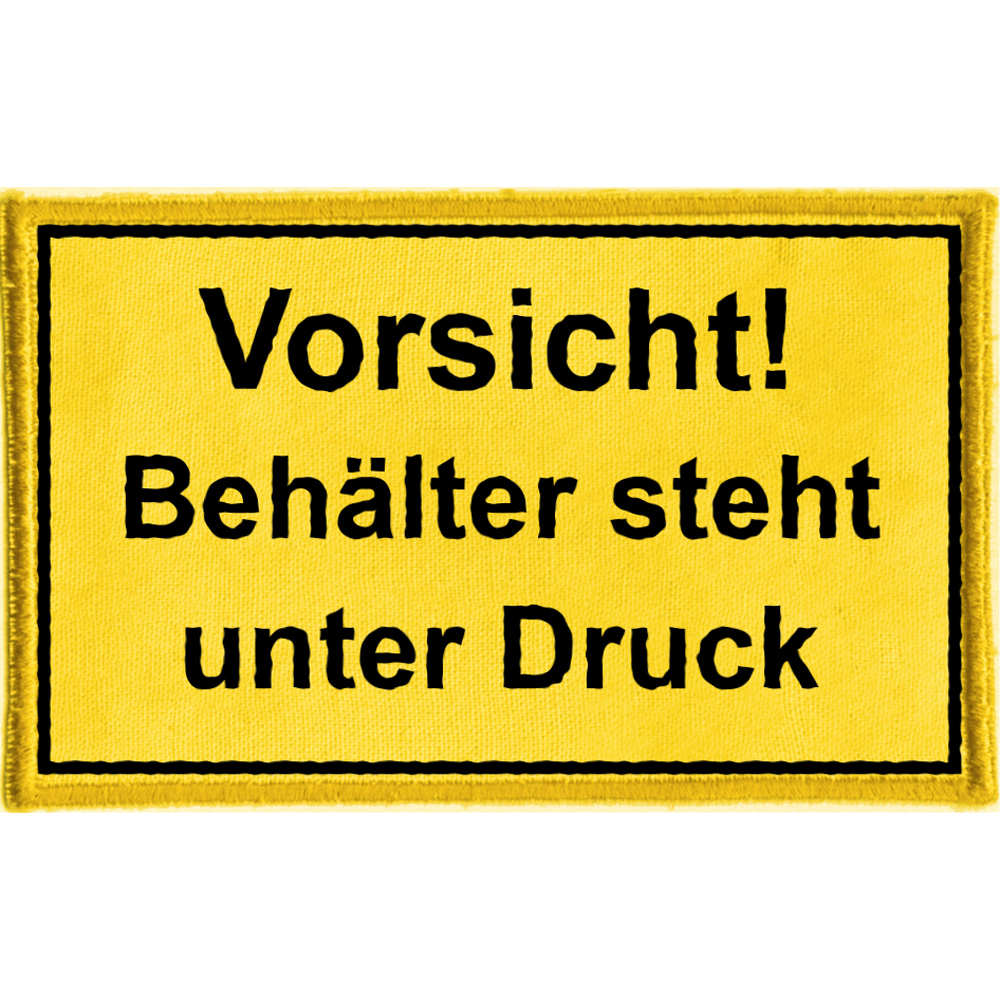 Aufnäher - Vorsicht - Behälter steht unter Druck - 21705 - Gr. ca. 8 x 5 cm