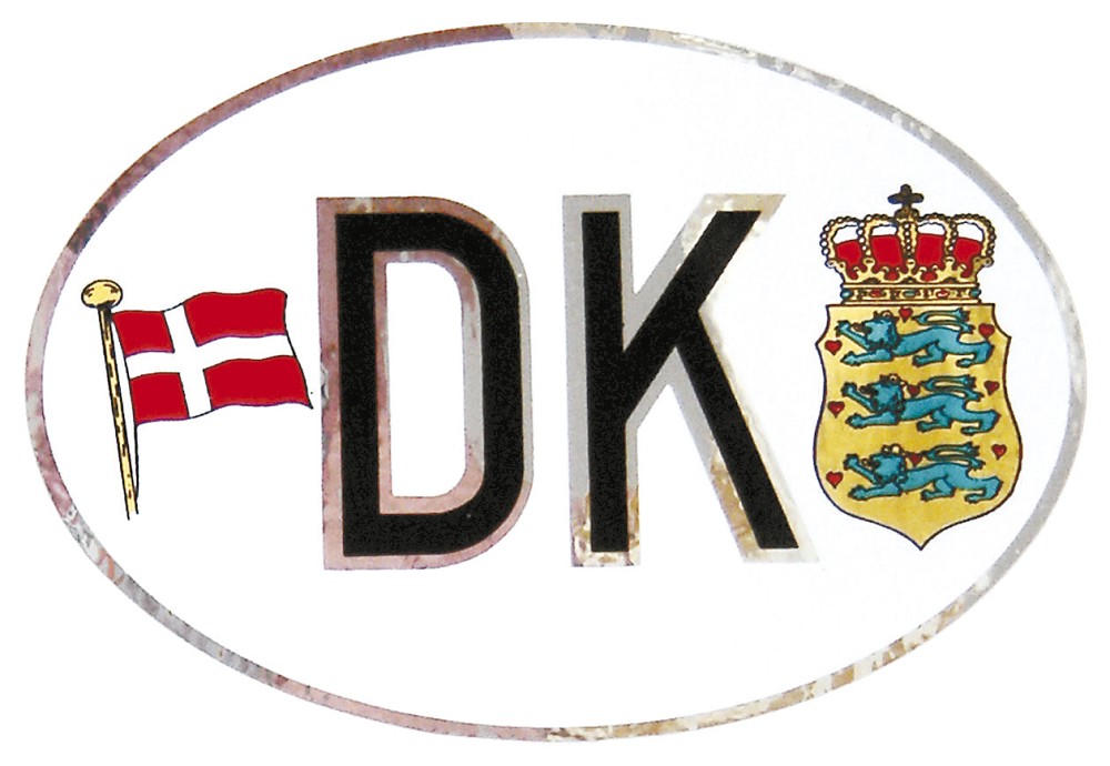 Alu-Qualitätsaufkleber oval - DK = Dänemark Wappen Fahne - 301159 - Gr. ca. 102 x 66 mm