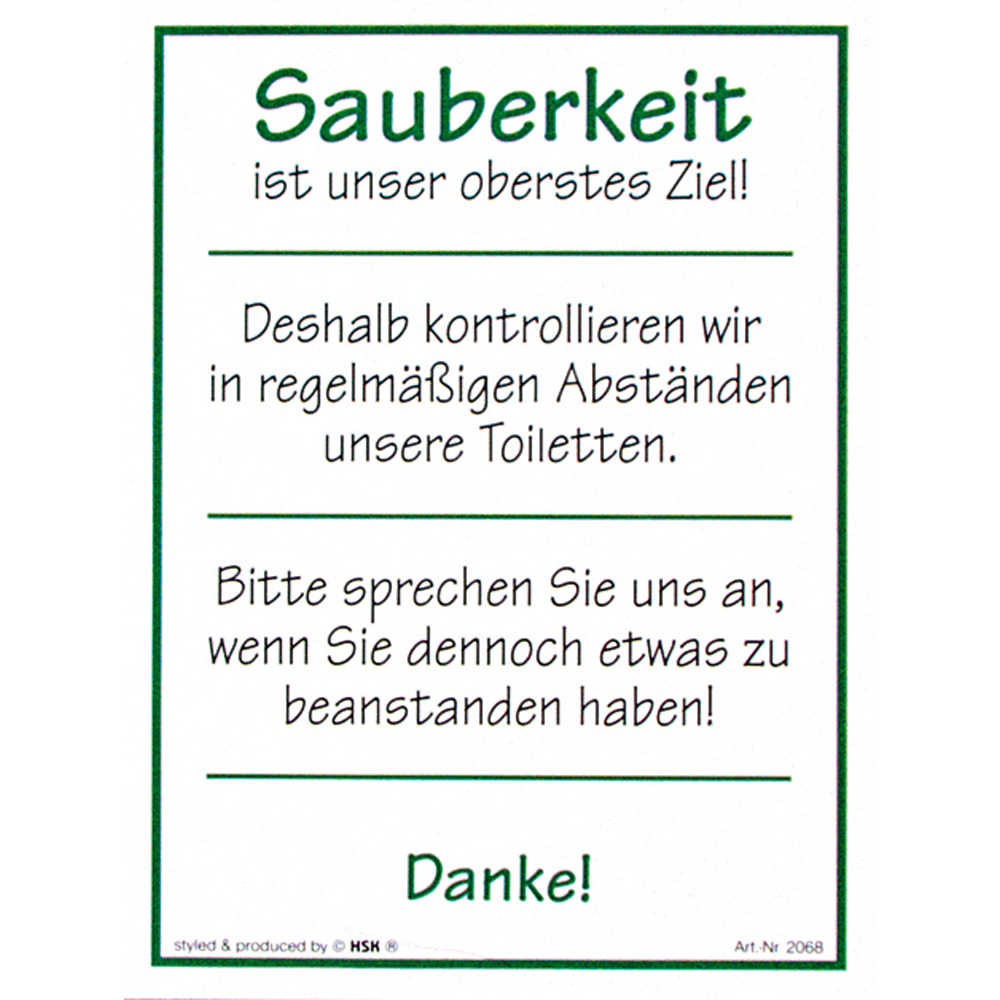 Hinweisschild - SAUBERKEIT ... - Gr. ca. 20 x 15 cm - 302068