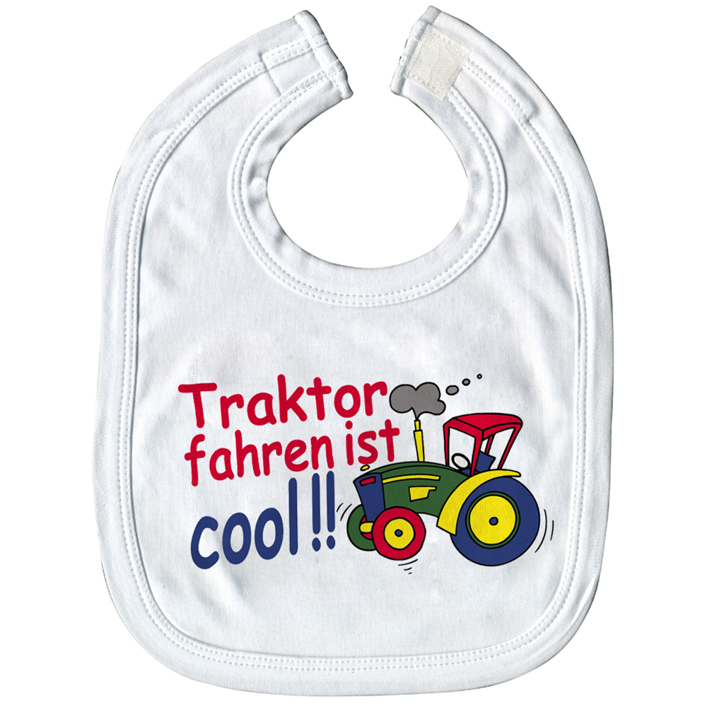 Baby-Lätzchen mit Druckmotiv - Traktor fahren ist cool - 08410 weiß