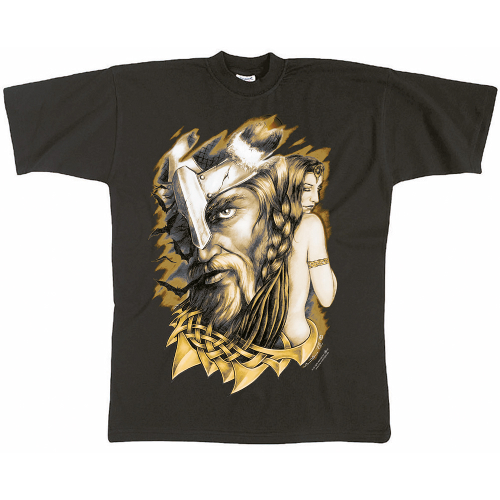 Kinder T-Shirt mit Print - Wikinger Frau Zopf Beute - 92100 schwarz - Gr. 164