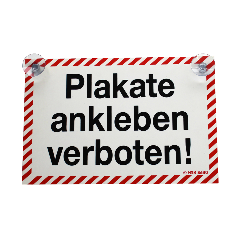 Schild mit Saugnäpfe - Plakate ankleben verboten - 308630/1 weiß-rot - Gr. ca. 30 x 20 cm